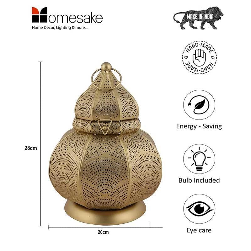 Hey, ever wanted your own personal genie lamp? This bronze beauty might just grant that wish! With its charming perforations, it casts mesmerizing patterns that’ll dance on your walls. Perfect for adding a touch of magic to your room. But here’s the thingit’s not just a lamp; it’s an experience. Imagine curling up with a book, the lamp’s warm glow enveloping you like a cozy blanket. Sunday chai, windows open, and this lamp casting its enchanting spell? Just perfect.