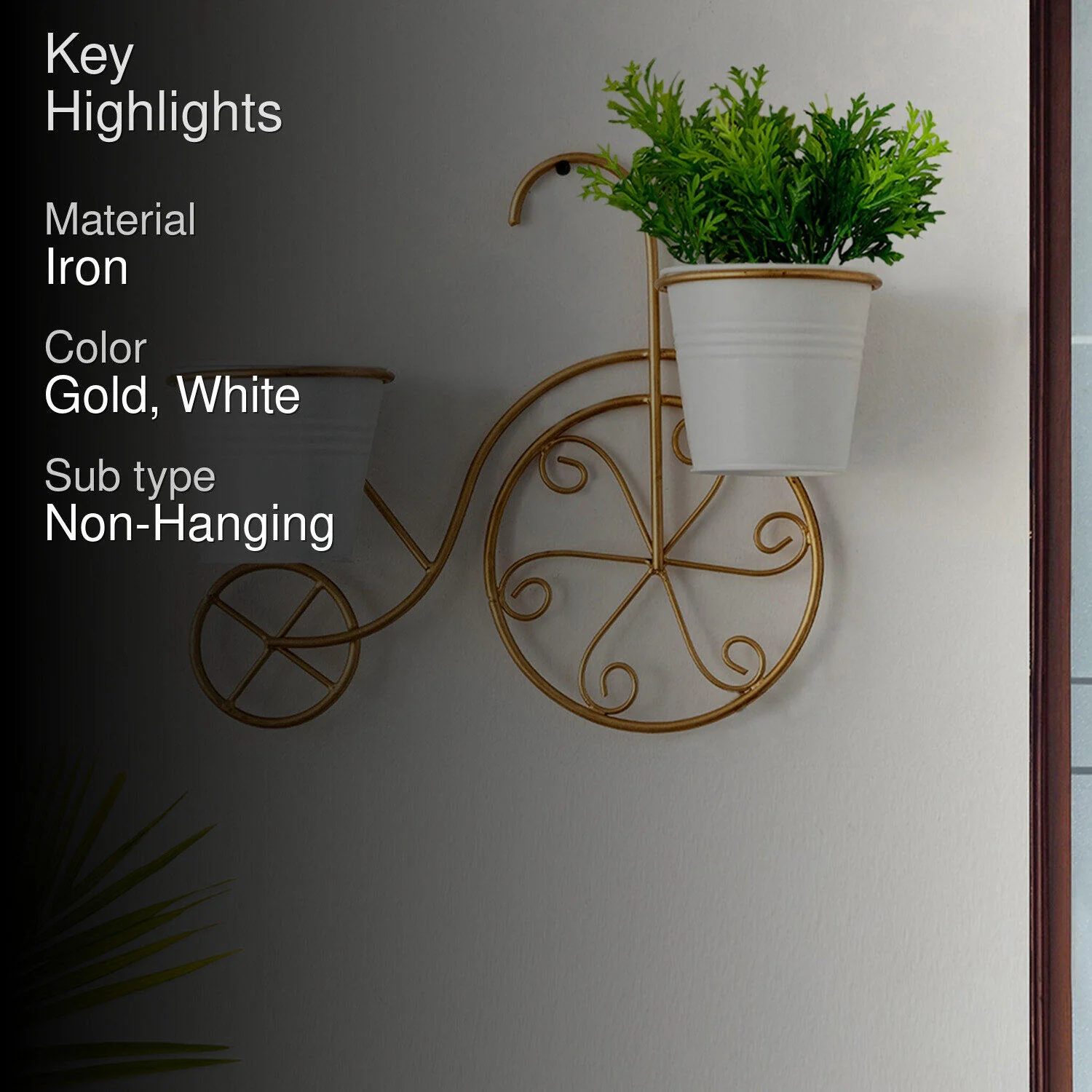 This charming little planter is like a vintage bicycle for your plants! It’s got these lovely gold swirls and two white pots that seem to say, ‘Fill me with joy!’ Perfect for perking up a dull wall space. Who knew plant decor could pedal its way into your heart? And honestly, wouldn’t it make your snug Sunday coffee nook just that bit sweeter? Well, let me tell you, it sure does! Just imagine the sunlight catching those gold accents while you sip your morning brew. Bliss.
