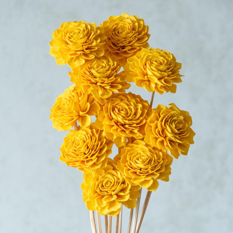 Musa Sola Wood Rose Flower Stick (Yellow) – Set Of Ten