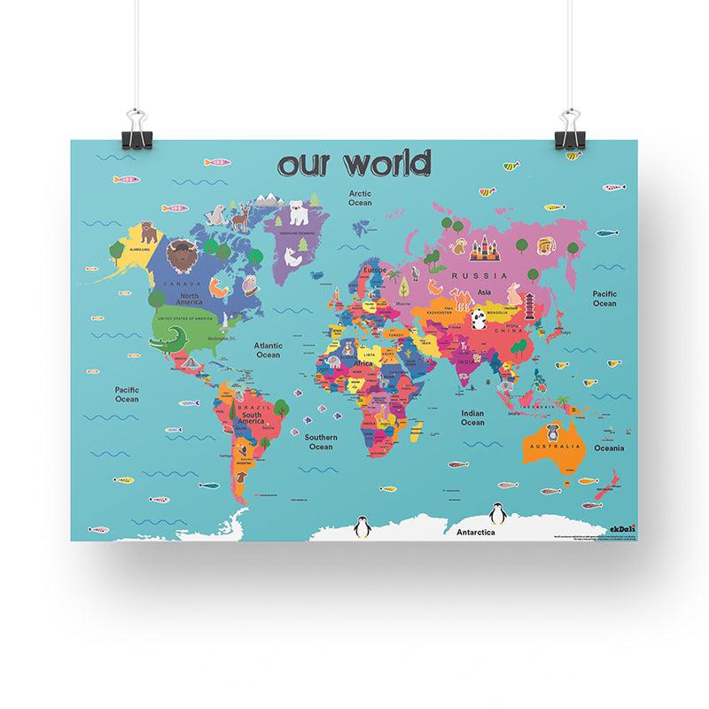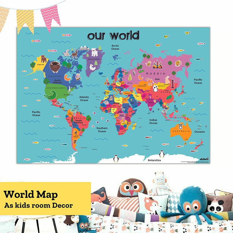 Hey, thinking of jazzing up your kids room? Check out this playful world map poster! Its bursting with colors and cute little animals, making geography look like a fun safari. No frame needed, just pop it on the wall and voil! Perfect for sparking curiosity in little explorers. Plus, its as educational as it is decorative. And who knows? It might even inspire your next family adventure. Imagine Sunday mornings with a cup of chai, kids pointing out penguins in Antarctica. Delightful, right?