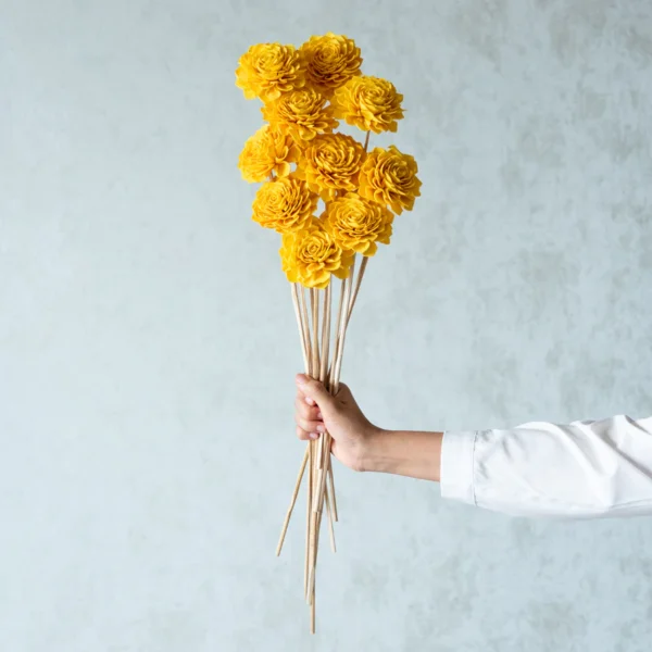 Original price was: ₹5,000.00.₹4,800.00Current price is: ₹4,800.00.Musa Sola Wood Rose Flower Stick (Yellow) – Set Of Ten